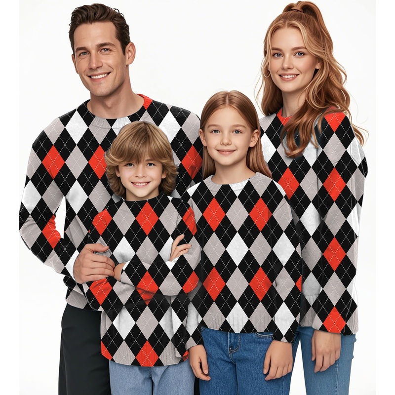 Argyle red black Crewneck Pullover Ugly Sweater Men Women boy girl family