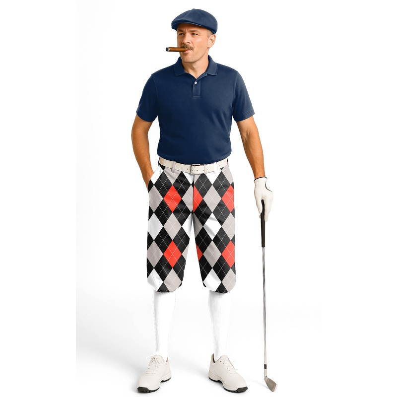 Argyle red black-Men’s Golf Knickers Pants