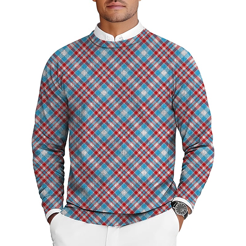 Argyle red blue Men’s Golf Crewneck Pullover Sweaters Ugly Sweater