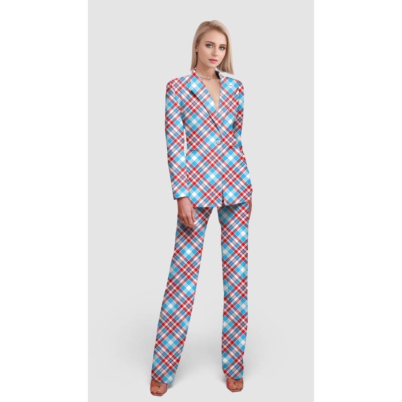 Argyle red blue-Women’s Blazer Casual Work Office Blazer Suit set