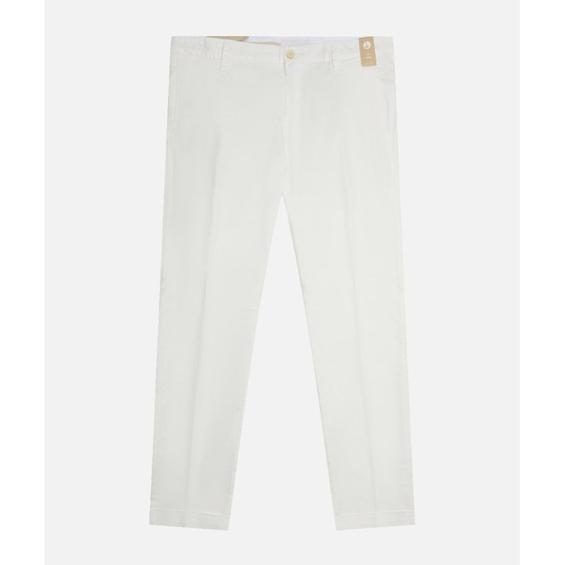 Slim fit chinos in cotton-elastane fabric. This model is characterized by back welt pockets with flaps, without pleats on the front and finished bottom with turn-up.