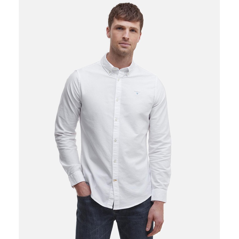 The Barbour Oxford shirt, tailored from 100% cotton, features a classic button-front placket and chest embroidery for a classy finishing touch.