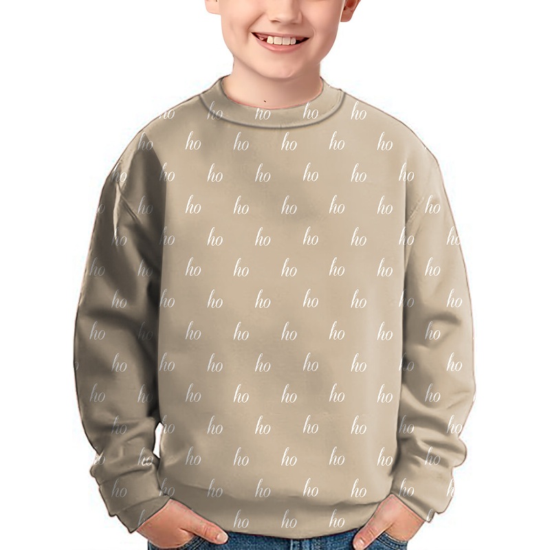 Beige Custom Name Christmas Crewneck Pullover Kids Ugly Sweater