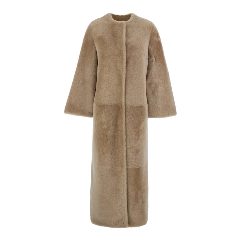 description" content=" shearling coat beige round neckline long sleeves concealed fastening straight hem fur loose fit - Shop online on Gaudenzi Boutique - Subscribe to our Newsl ...