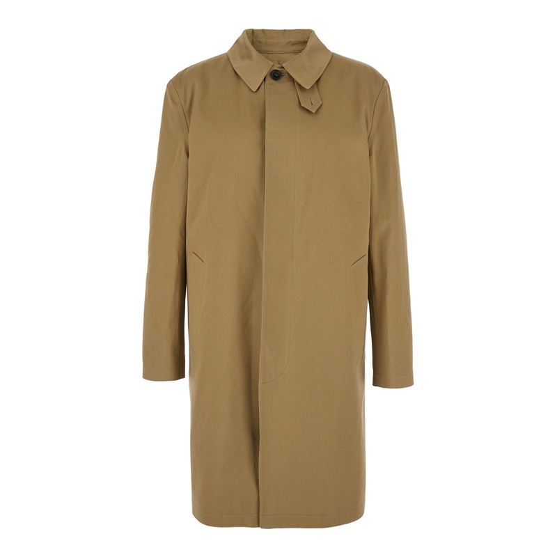 description" content=" trench beige classic collar long sleeves concealed front button closure two side pockets back slit removable inner lining straight hem cotton regular fit - ...