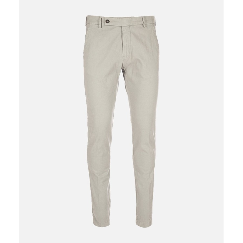 Regular fit stretch cotton gabardine trousers without pence. Two front slash pockets and two back welt pockets, one of which closed with a button. Made in Italy