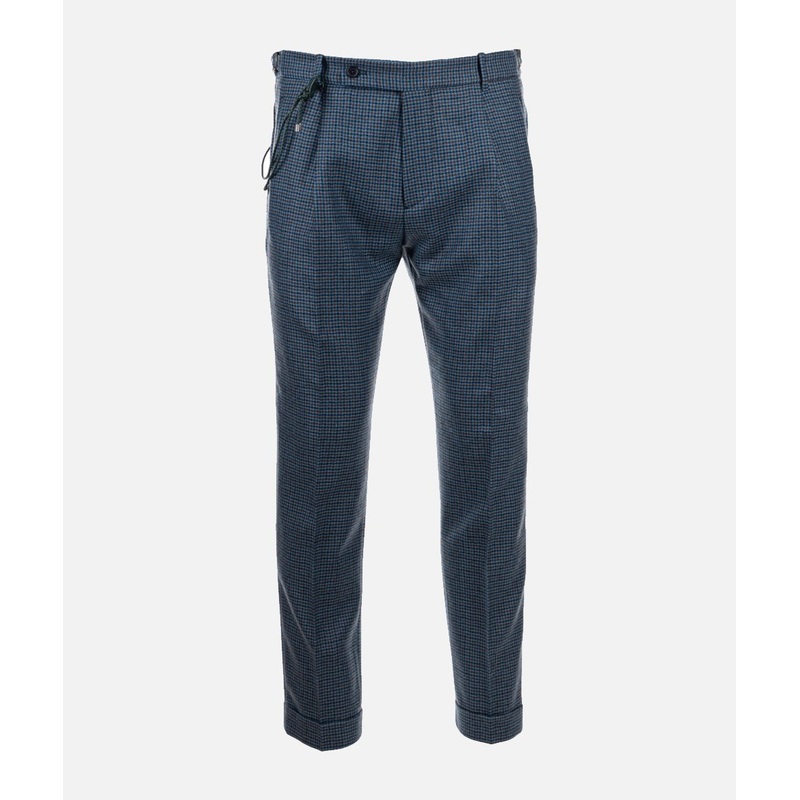 Made in Italymen’s trousers, Carrots fit, in wool pied de poule fabric, micro-effect design.