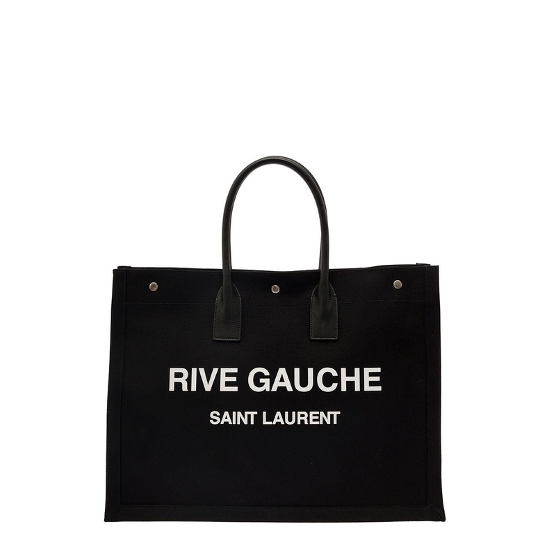 ‘Big Rive Gauche’ Black Tote Bag with Contrasting Logo Print in Cotton Man