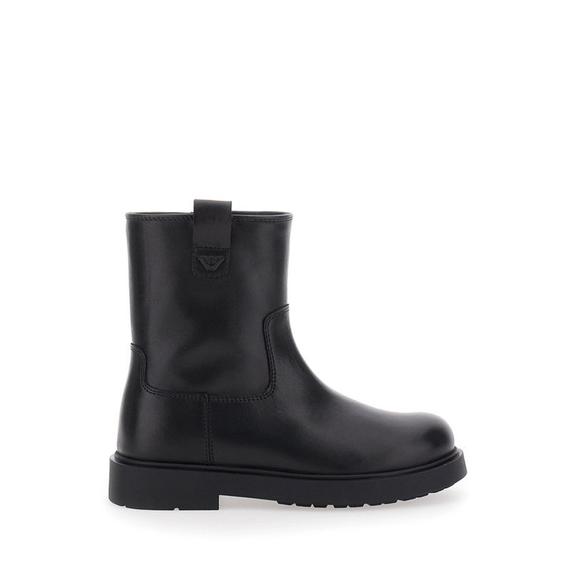 Black Boots with Logo Patch and Side Zip Closure in Leather Boy