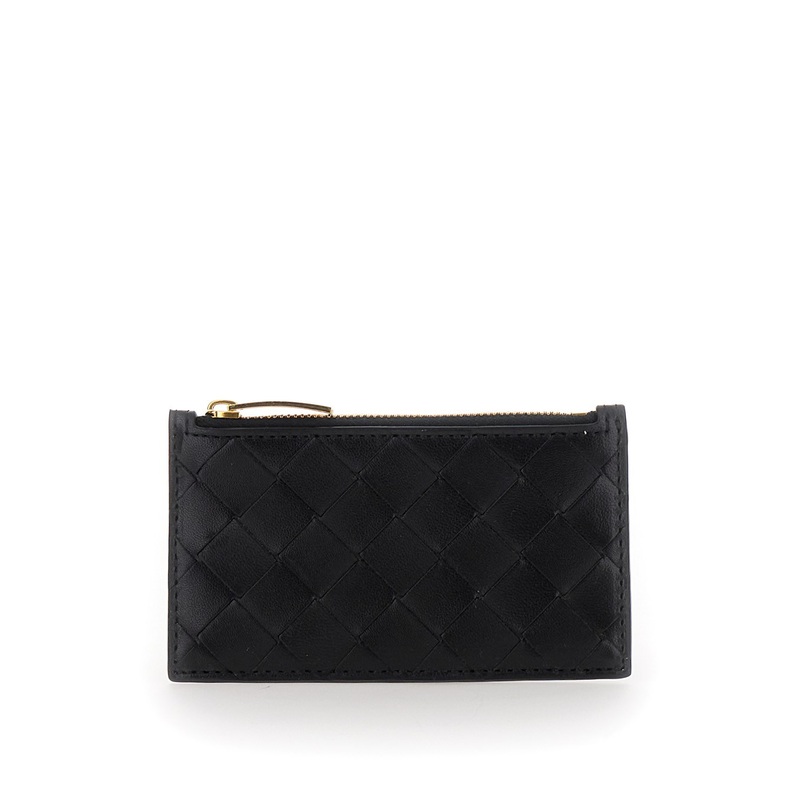 Black Cardwallet with Zip and Intrecciato Motif in Leather Woman