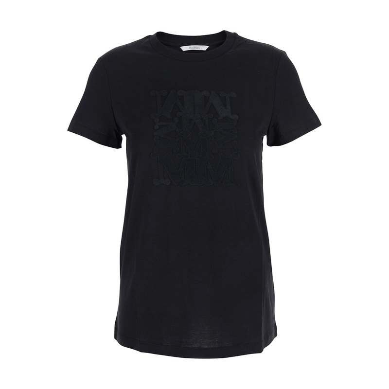 Black Crew Neck T-Shirt with Front Logo in Cotton Woman
