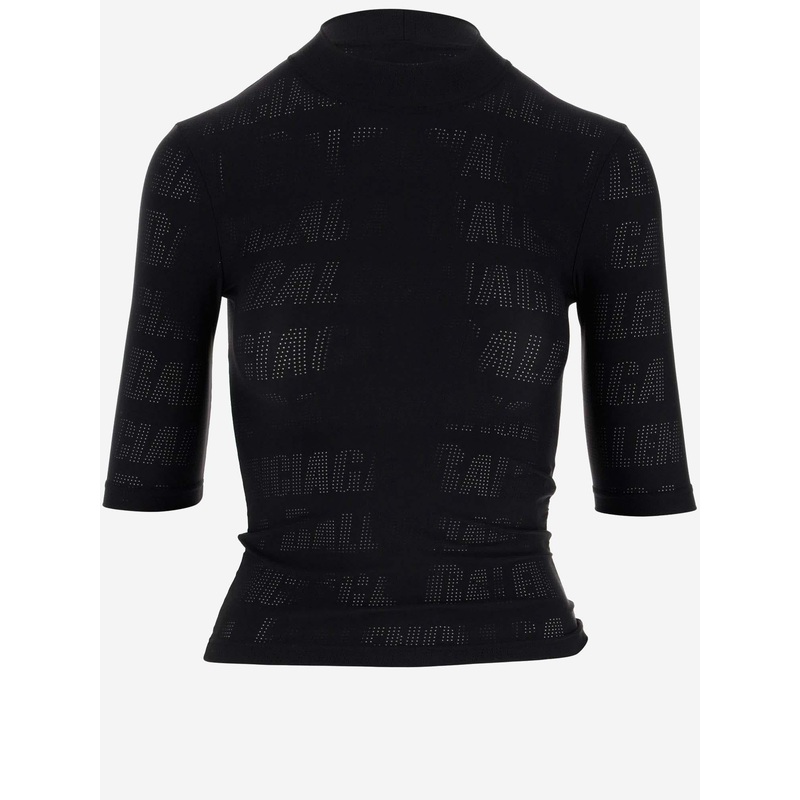 This refined Logo Stretch Jersey Top by Balenciaga combines contemporary edge with timeless tailoring. Crafted from stretch jersey for a second-skin fit, it features an elegant funnel neck and three-quarter sleeves for a polished, modern silhouette. The all-over open stitch logo detail adds subtle texture and signature appeal, making it ideal for sophisticated layering or as a statement on its own.