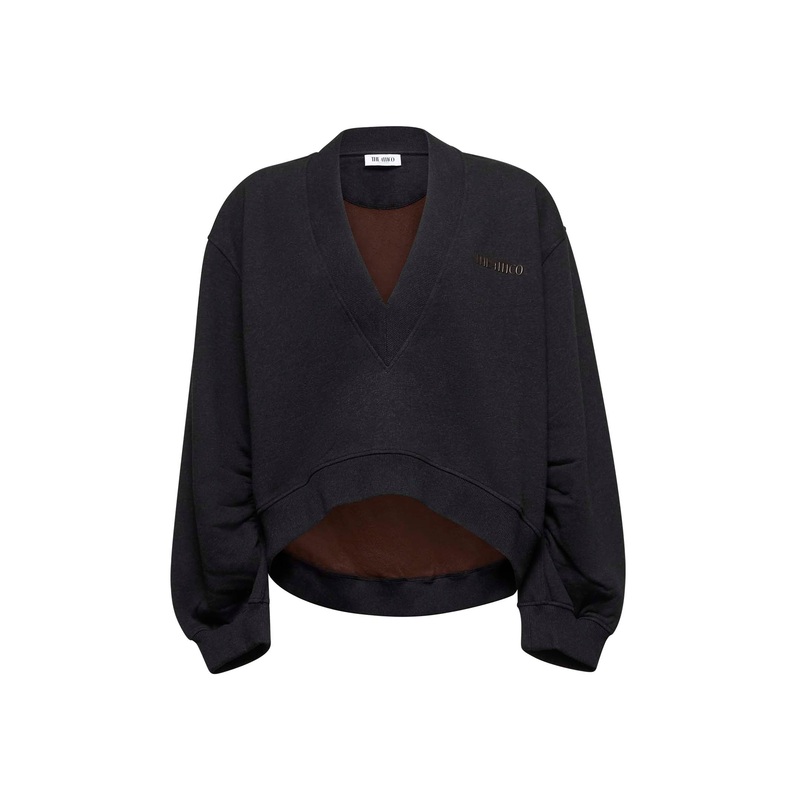 Ribbed V-neckLong wide sleeves with gathered detailing, dropped shouldersThick rubberised logo print at chestRibbed cuffs and bottom bandBlack fade and brown double american fleece designOversized fitBlack color100% CottonMade in Portugal