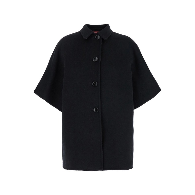 description" content=" cape black pointed collar short wide sleeves front button closure reversible style wool and silk oversize fit - Shop online on Gaudenzi Boutique - Subscrib ...