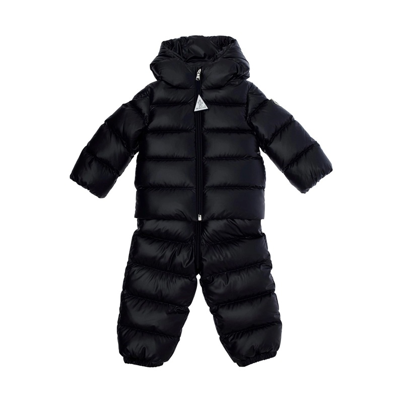 description" content=" two-piece set black fixed hood with ears long sleeves front zip fastener logo patch on sleeve padded and quilted pockets with snap buttons elasticated cuff ...