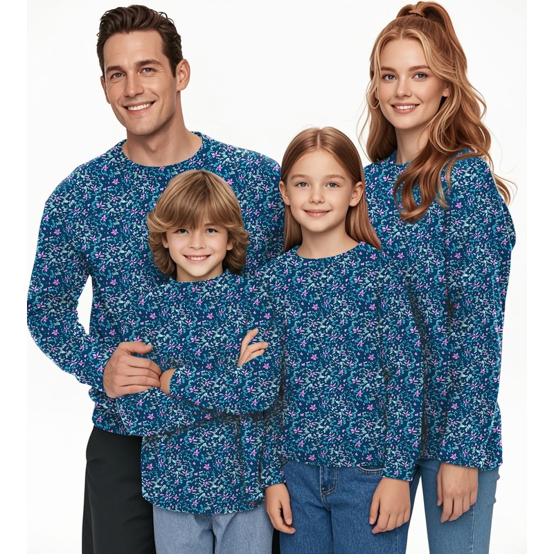 Blooming Blue Crewneck Pullover Ugly Sweater Men Women boy girl family