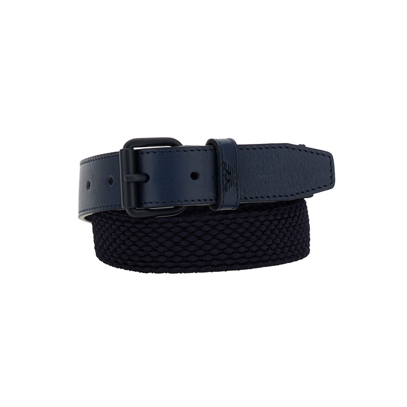 Blue Belt with Logo in Braided Fabric and Leather Boy