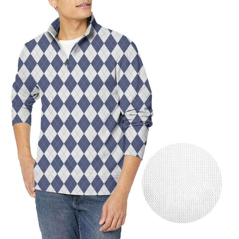 Blue diamond grid-Men’s Golf Waffle Zipper Pullover