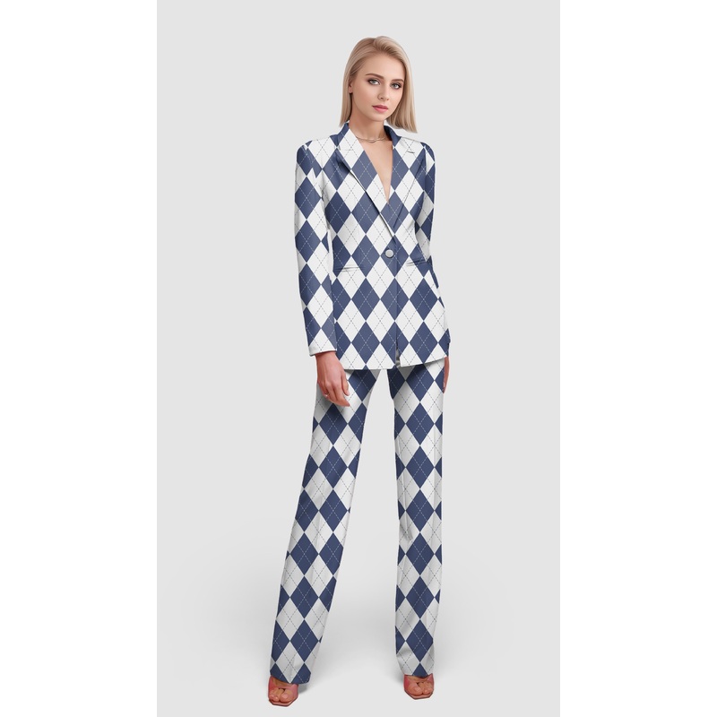Blue diamond grid-Women’s Blazer Casual Work Office Blazer Suit set