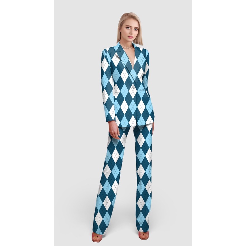 Blue green Argyle-Women’s Blazer Casual Work Office Blazer Suit set