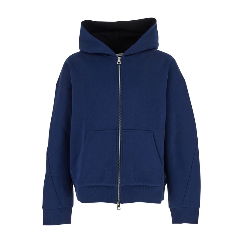 description" content=" sweatshirt blue fixed hood long sleeves zip closure dropped shoulders logo lettering on the front front pouch pocket ribbed hem and cuffs cotton blend rela ...