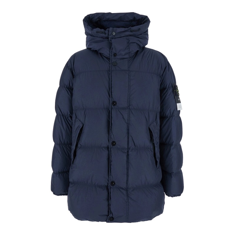 description" content=" jacket blue drawstring hood long sleeves front concealed zip closure front button closure two front welt pockets with zip logo patch on the sleeve elastic ...