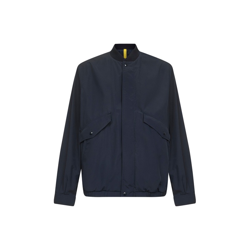 Front concealed zip and snap button placketRibbed knit bomber collarLong sleeves, snap-buttoned cuffs; logo patch at left sleeveFront pockets with snap-buttoned flap, slanted side zipped welt pocketsElasticated hemMicromesh liningNylon designMoncler x Merc