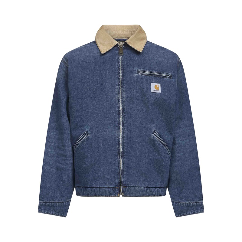 Front zip closure Contrasting corduroy pointed collar Long sleeves, adjustable snap-buttoned cuffs WIP square fabric label at chest Slanted side welt pockets, chest welt pocket Adjustable hem with snap-buttoned tabs Triple-stitched Contrasting fleece linin