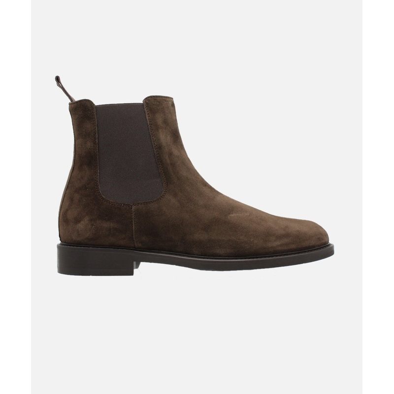 Dark brown suede Beatles ankle boots with matching elastic bands and rounded lines. Easy to wear and extremely comfortable. Rubber sole. Made in Italy.