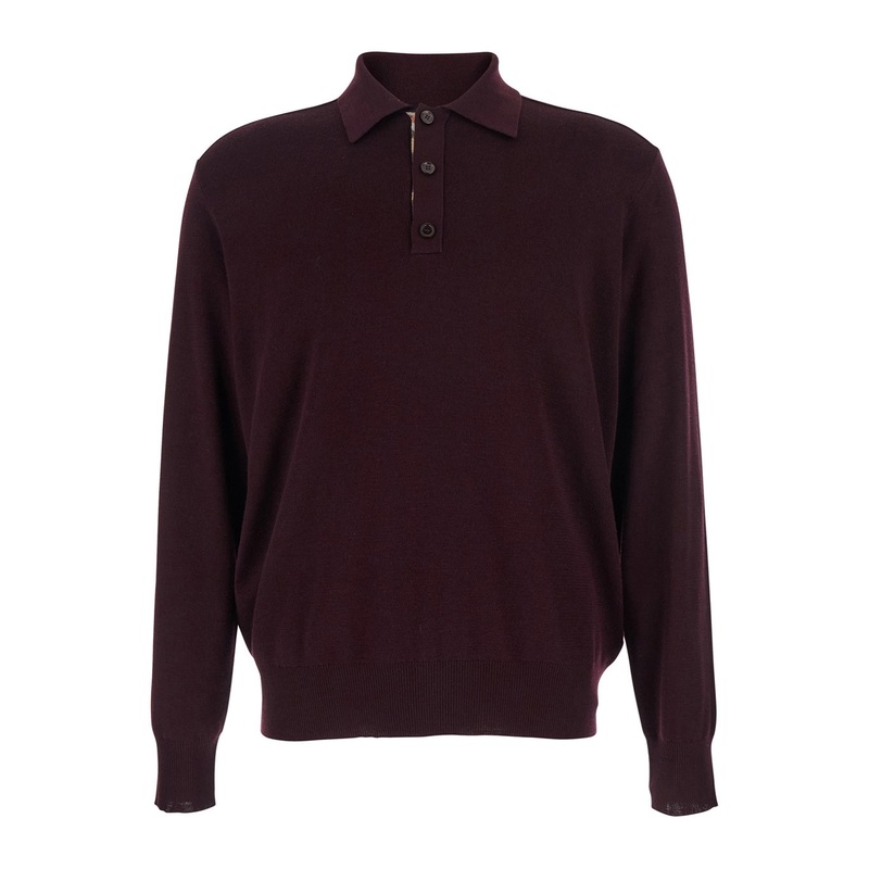 Bordeaux Polo Shirt with Classic Collar and Check Detail in Wool Man