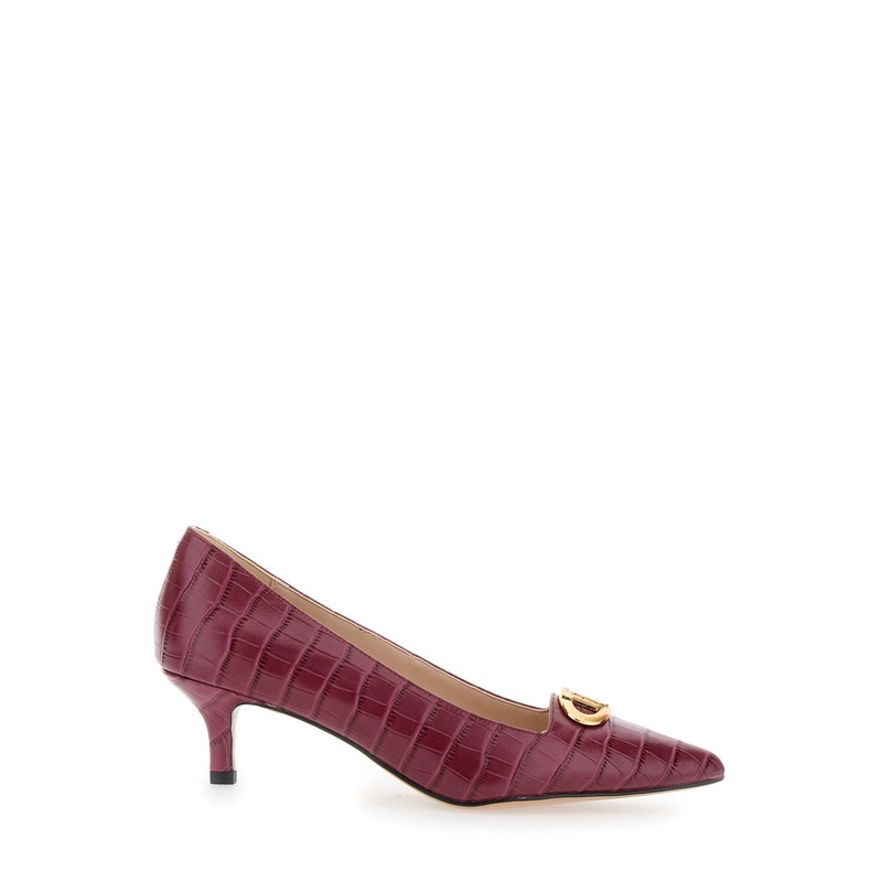 description" content=" pumps bordeaux slip-on style pointed toe logo plaque on the front low stiletto heel gold tone metalware embossed crocodile effect leather heel height: 5 cm ...
