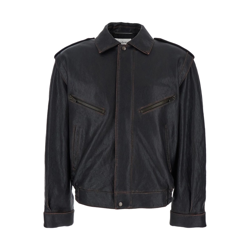 Brown Jacket with Lived Effect and Front Welt Pockets in Leather Man