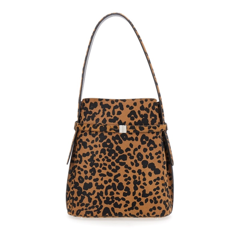 Brown Shoulder Bag with Fixed Shoulder Strap and All-Over Leopard Motif in Leather Woman
