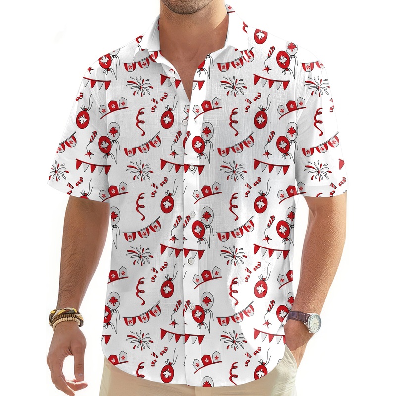 Canadian Flag Celebration Men’s Golf Hawaiian Shirts Button Down Shirt