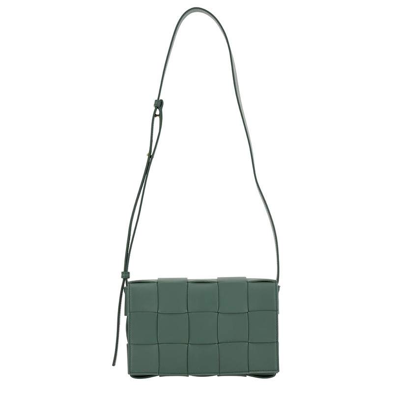 ‘Cassette’ Green Crossbody Bag with Intreccio Motif in Leather Woman