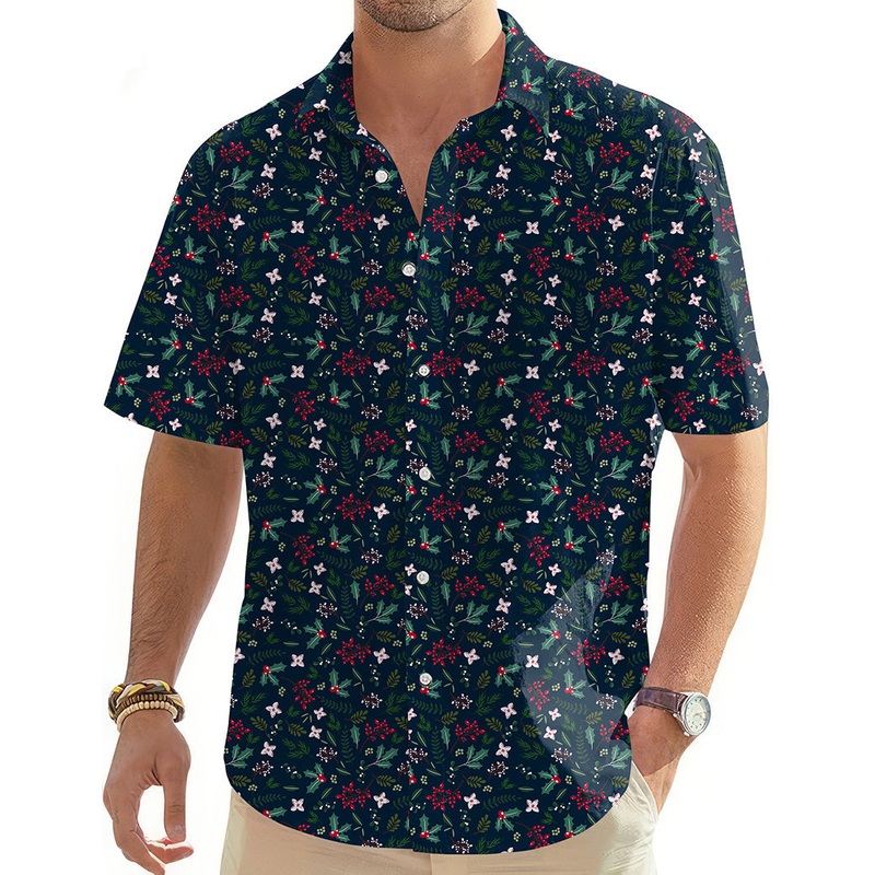Christmas holly Men’s Golf Hawaiian Shirts Button Down Shirt