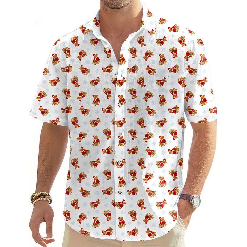 Christmas Teddy Bear Men’s Golf Hawaiian Shirts Button Down Shirt