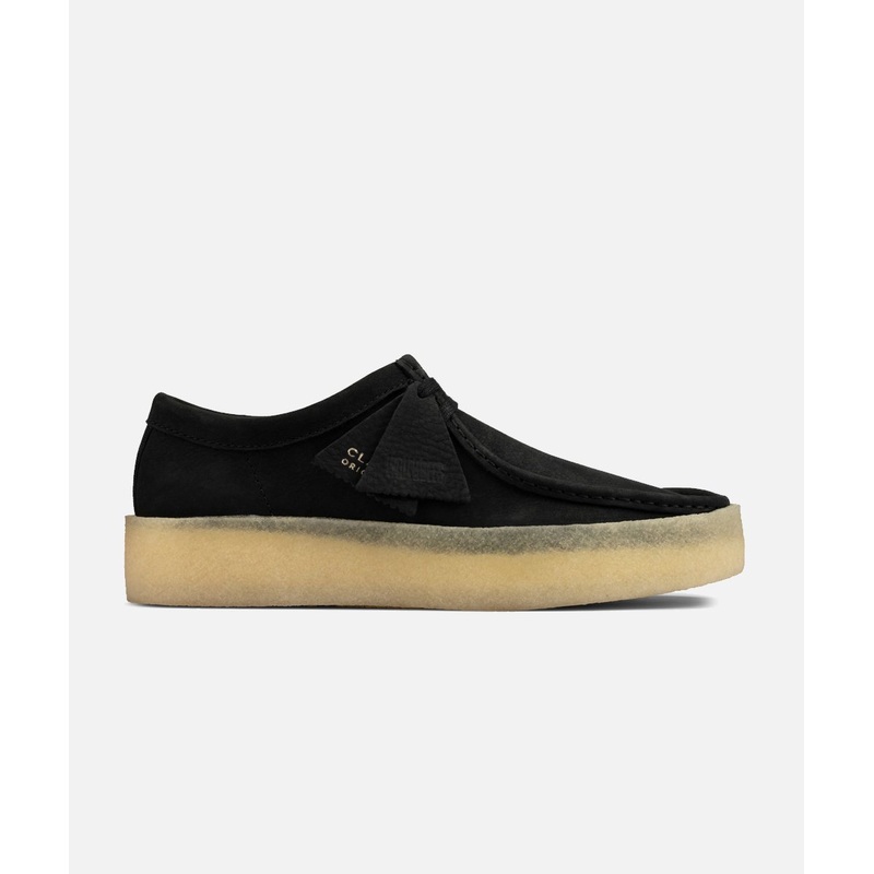 The Wallabee Cup, our versatile street-inspired molded profile, is crafted from soft black nubuck, but with extra waxed laces and tags, you can always add a pop of color. This summer staple features a lightweight natural textured crepe outsole and will acc