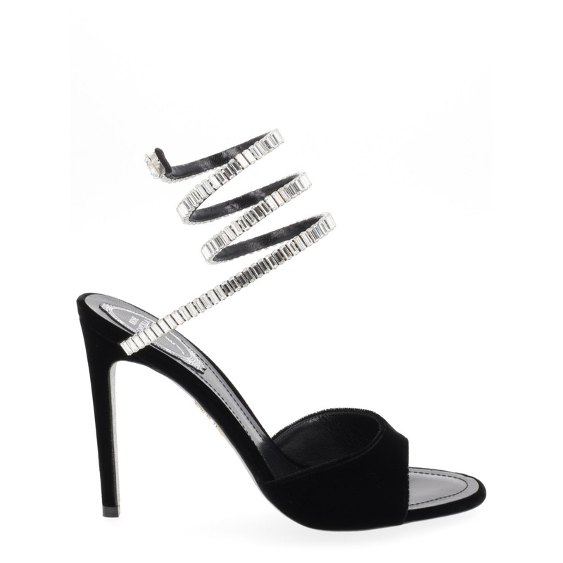 Elevate your evening ensemble with the stunning Cleo Spark Sandal from Rene Caovilla. This exquisite heeled sandal features a luxurious velvet platform strap and a show-stopping crystal-embellished spiral ankle wrap that catches the light with every step.