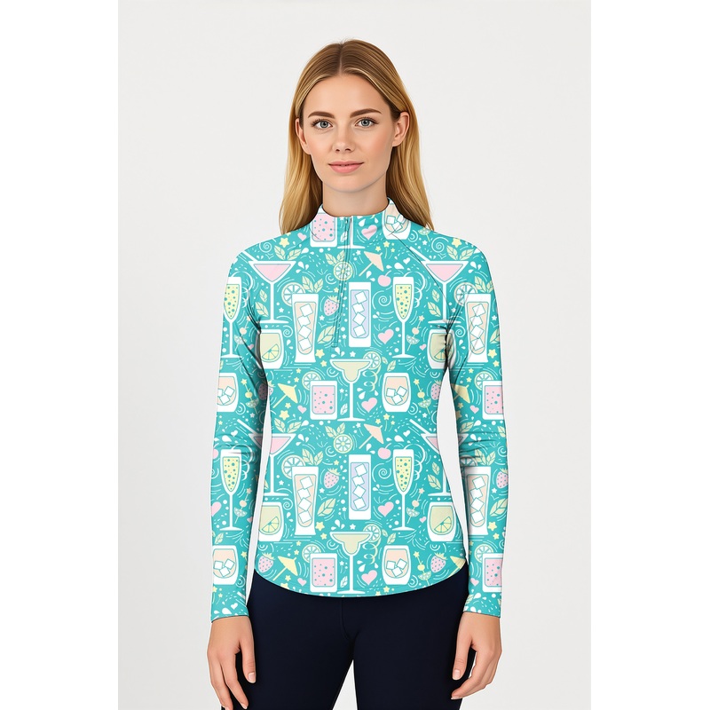 Cocktails Hello Summer Women’s Golf Active 3/4 Zip Top Long Sleeves