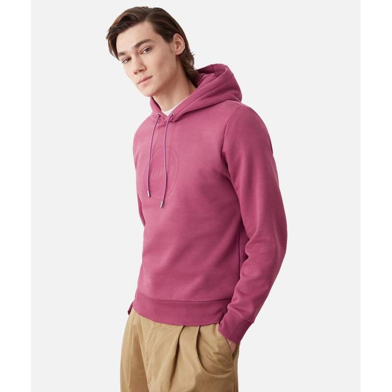 Men's hooded sweatshirt in cotton-blend brushed fabric. Practical and comfortable, this model with a sporty soul and a discreet look is enriched by the print of the 3D Colmar logo with an irregular appearance. The personalized drawstring on the hood allows