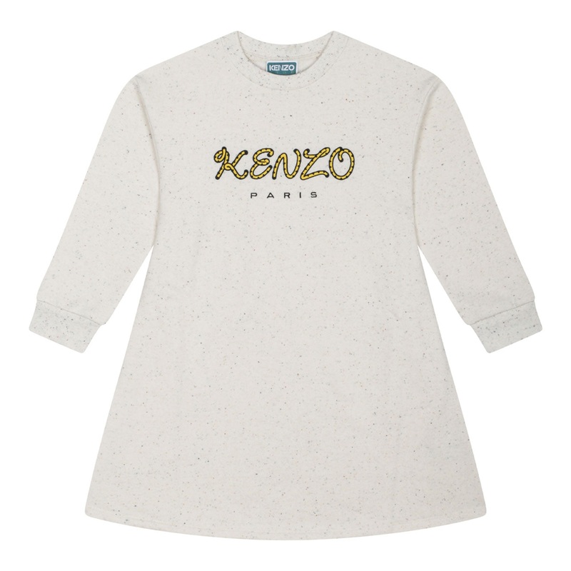 This charming cotton-polyester wicker dress from KENZO KIDS brings effortless style and comfort to any young wardrobe. Featuring a soft cream base with subtle speckled detailing, this long-sleeve dress showcases the iconic KENZO Paris logo in eye-catching