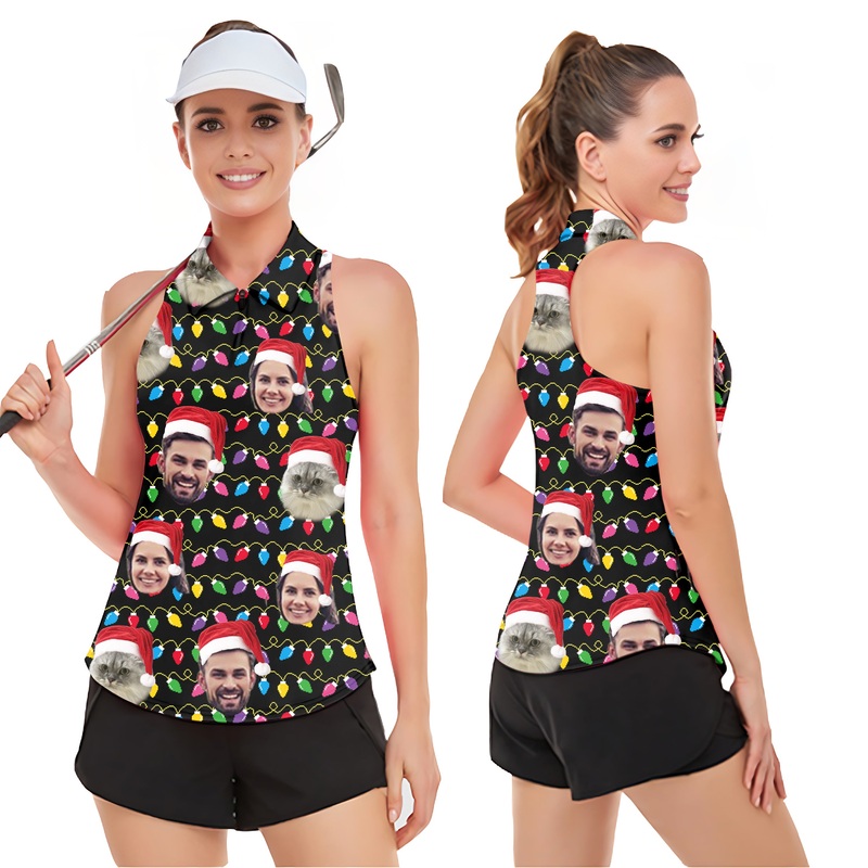 Custom face-Christmas Custom face Womens Sleeveless Golf Tank Top Shirt Polo
