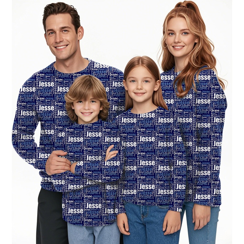Custom name navy blue Crewneck Pullover Ugly Sweater Men Women boy girl family