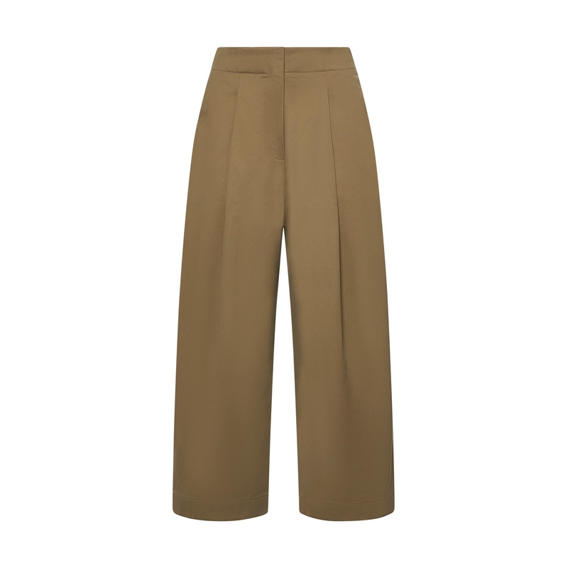 Green color 100% cotton Gabardine fabric Concealed front closure High waist Two side welt pockets Two back welt pockets Wide leg Made in EU