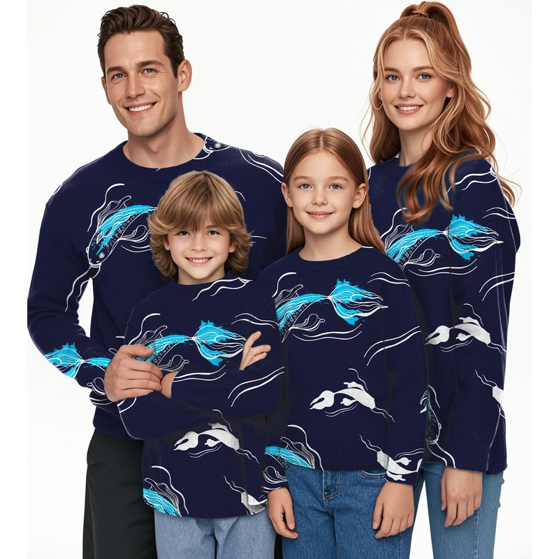Diamond Accents Fish Crewneck Pullover Ugly Sweater Men Women boy girl family