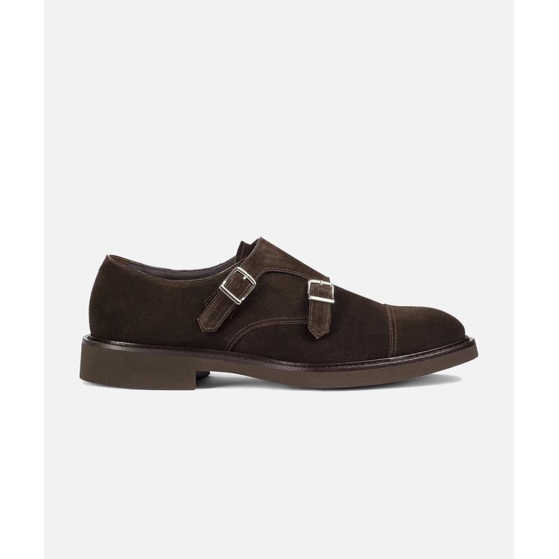 Double monk strap in brown suede. Modern style with tone-on-tone stitching, the perfect combination of craftsmanship and elegance. The cemented construction, with a glued sole, ensures exceptional support. Made in Italy.