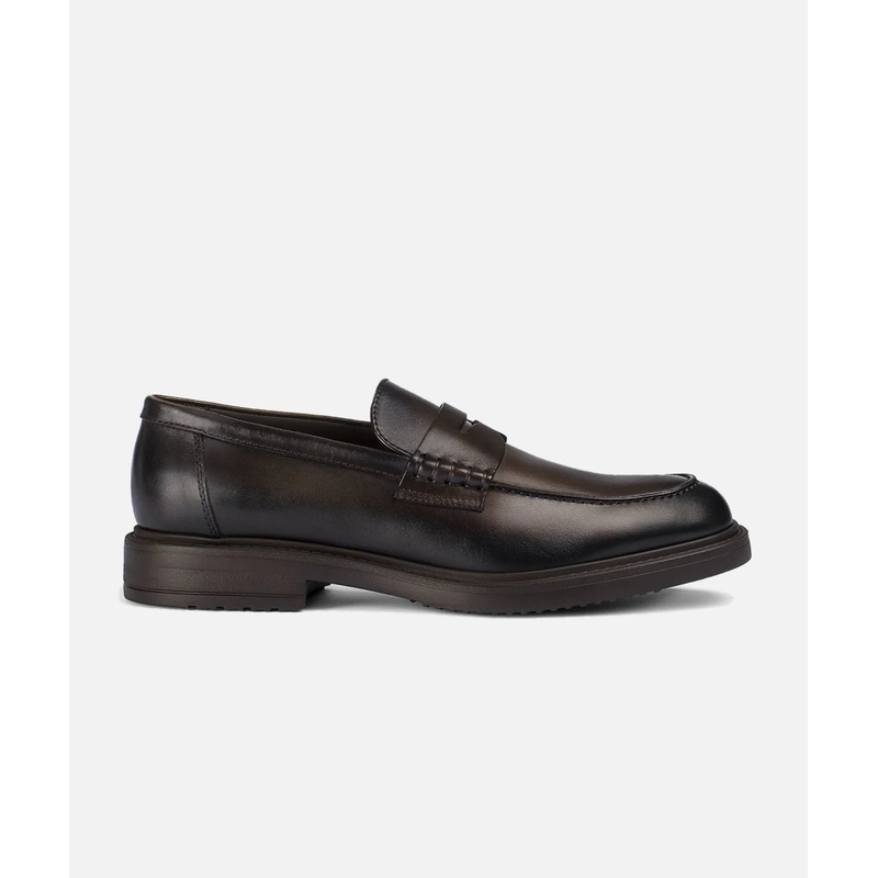 A refined moccasin crafted from high-quality dark brown leather with raised stitching that enhances its elegant profile. The new ultralight rubber sole ensures practicality and versatility, ideal for everyday wear. The Blake construction ensures durability