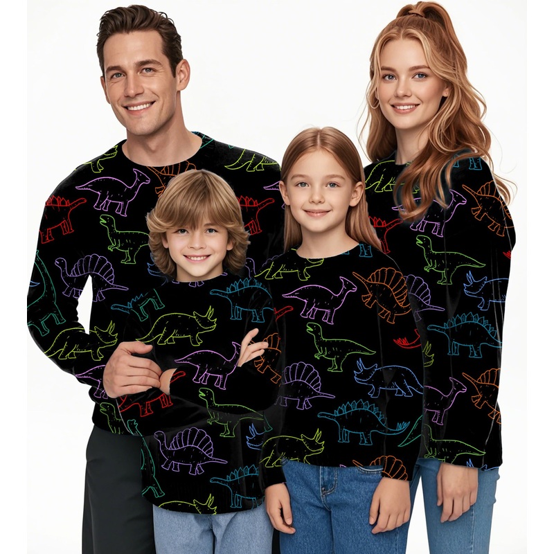 Electric Dinos Crewneck Pullover Ugly Sweater Men Women boy girl family