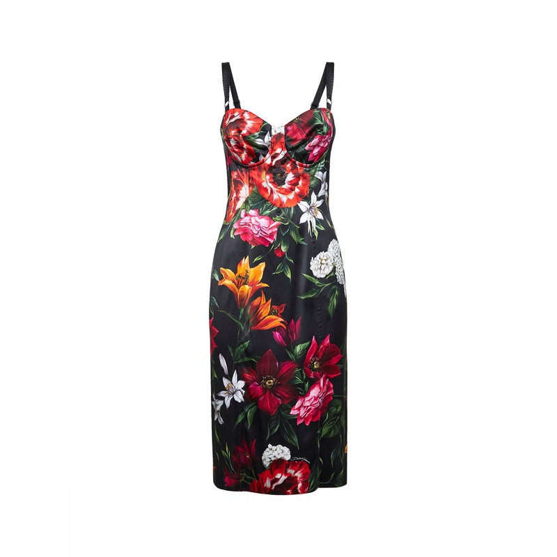 Floral print stretch satin midi dress